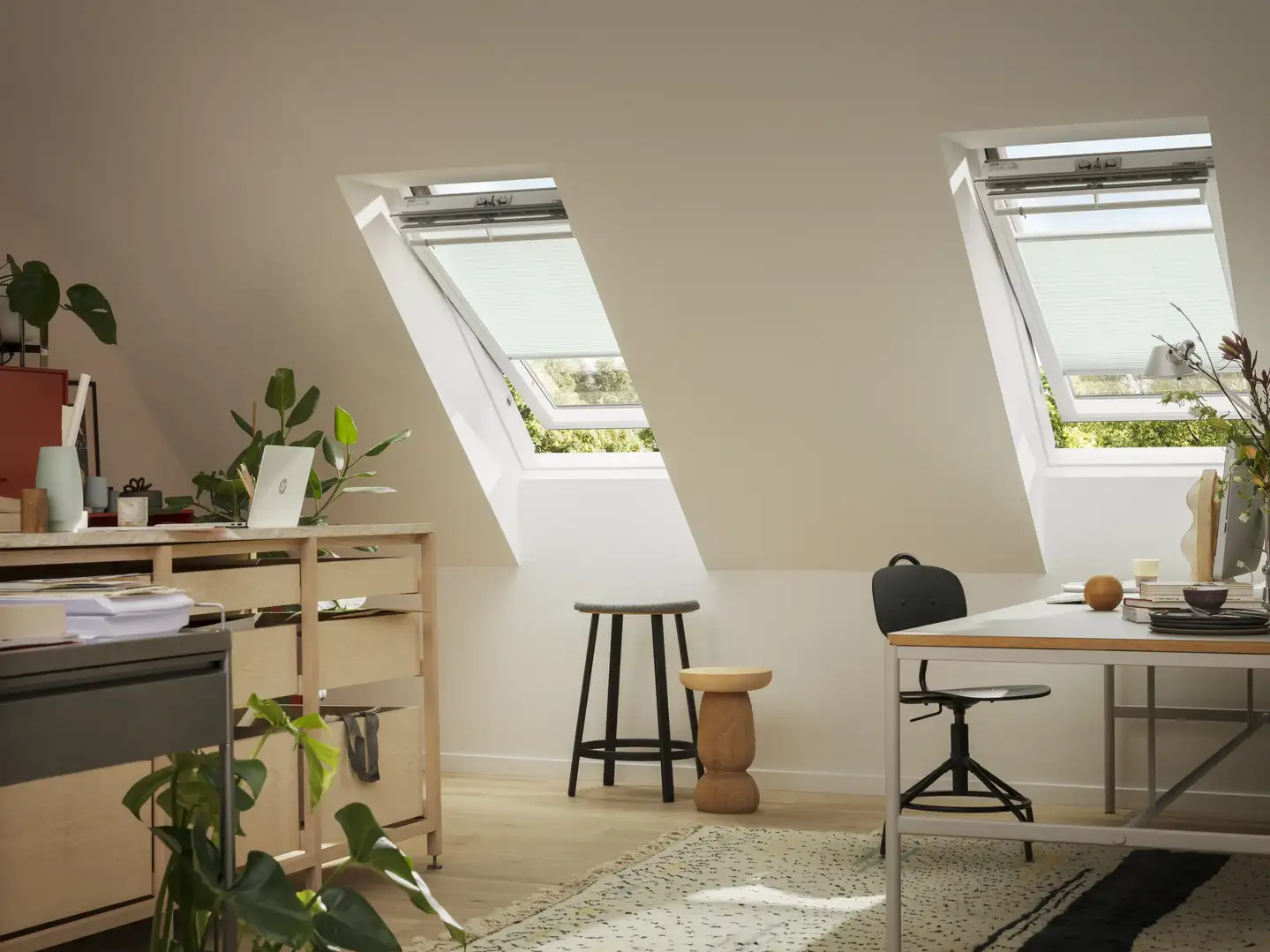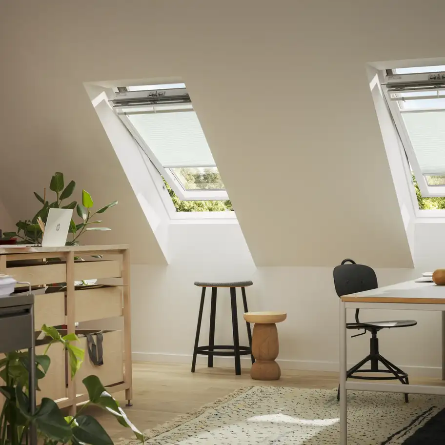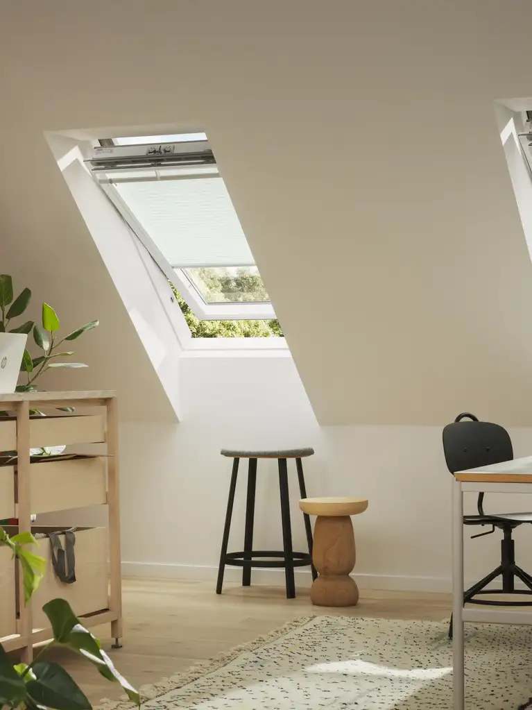 Montajul rulourilor VELUX nu necesită măsurare, decupare, tăiere sau unelte suplimentare. Acestea sunt create pentru o potrivire perfectă și tot ce ai nevoie este inclus în pachetul ruloului. Ferestrele tale VELUX au suporturi de montaj pre-instalate pentru rulouri. Pur și simplu apasă pe ruloul VELUX original și adaugă șinele laterale pre-montate.
